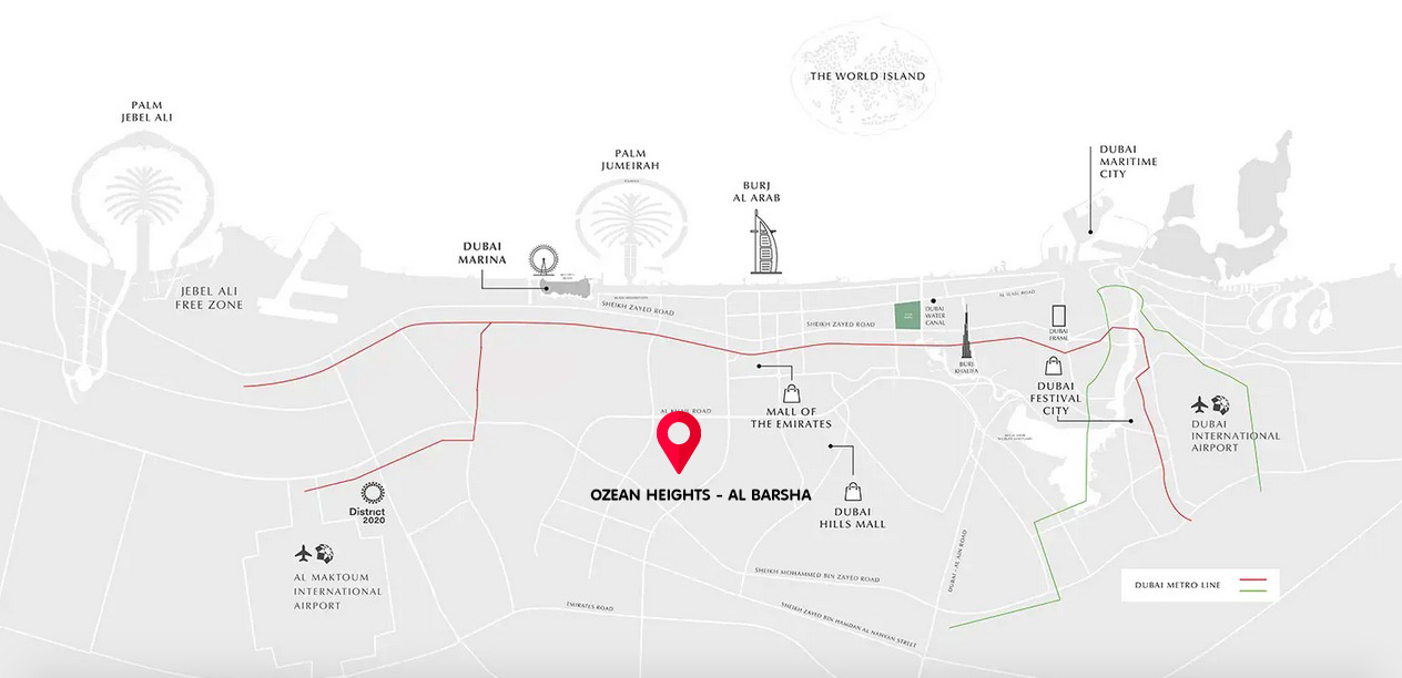 Barsha Heights (formerly known as Tecom) is ideally located at the junction of Sheikh Zayed Road and Al Khail Road, two of Dubai’s most prominent highways. This prime location makes it a key area for both business and residential purposes, with quick access to major commercial and leisure hubs.